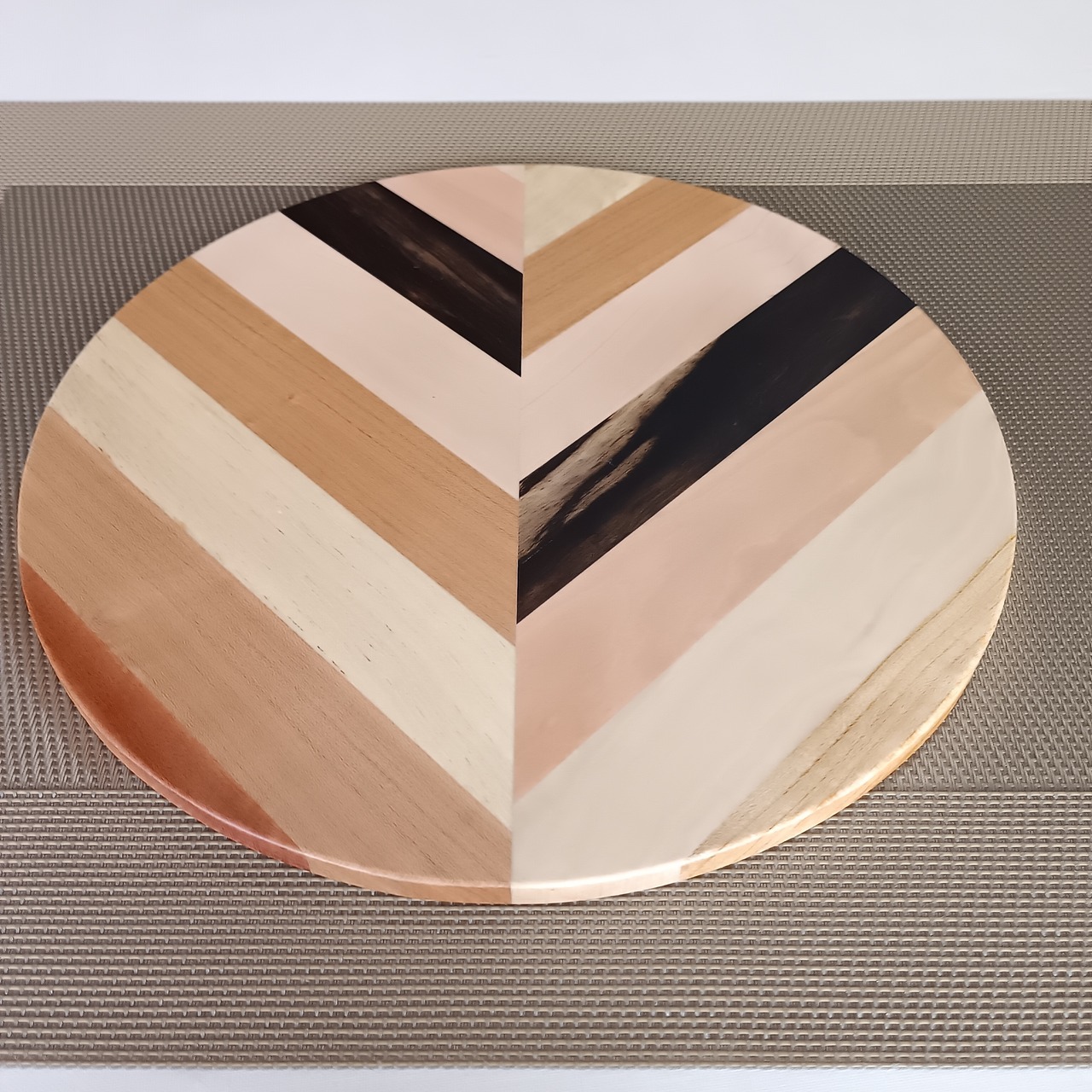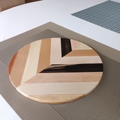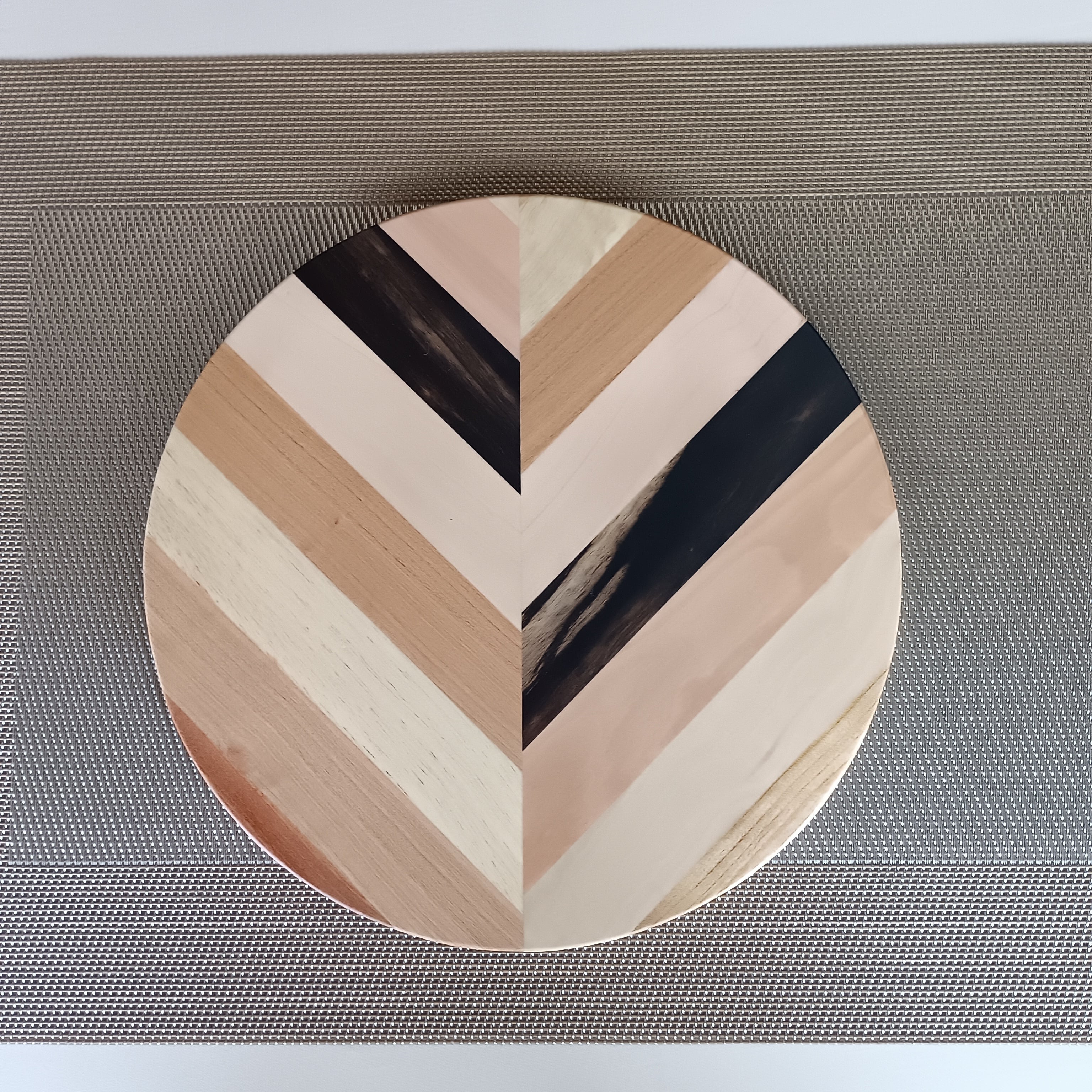 彩り豊かな果樹の角材を模様のように合わせ、さらに貼り合わせて木の葉を模したお皿です。シンプルなデザインとナチュラルな風合いは和食や洋食、スイーツまでどんな料理も引き立てます。